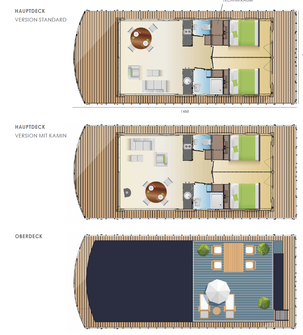 - 67 m² Wohn- und anteilige Nutzfläche (Grundfläche schwimmendes Haus 14 m x 6 m)