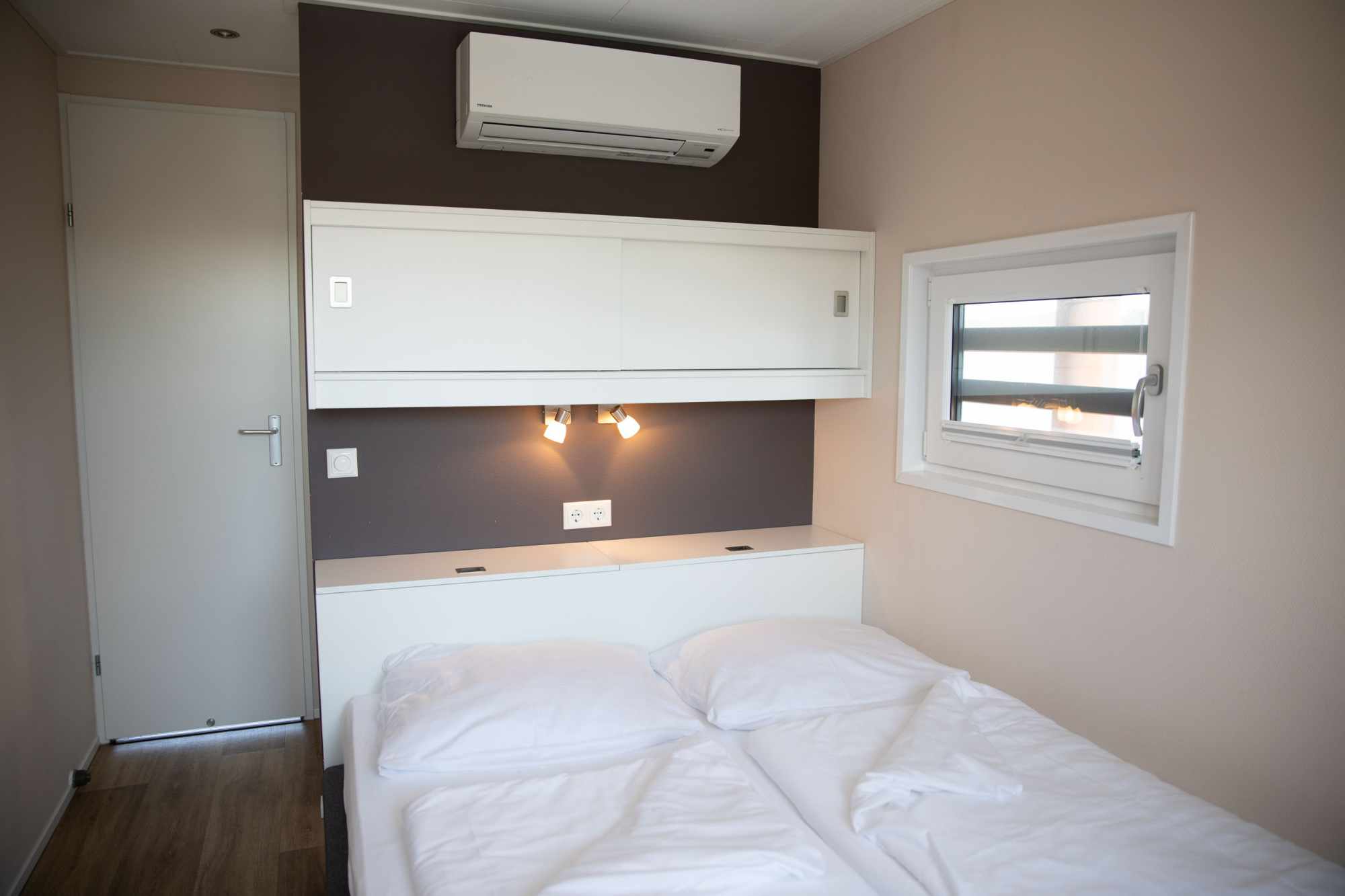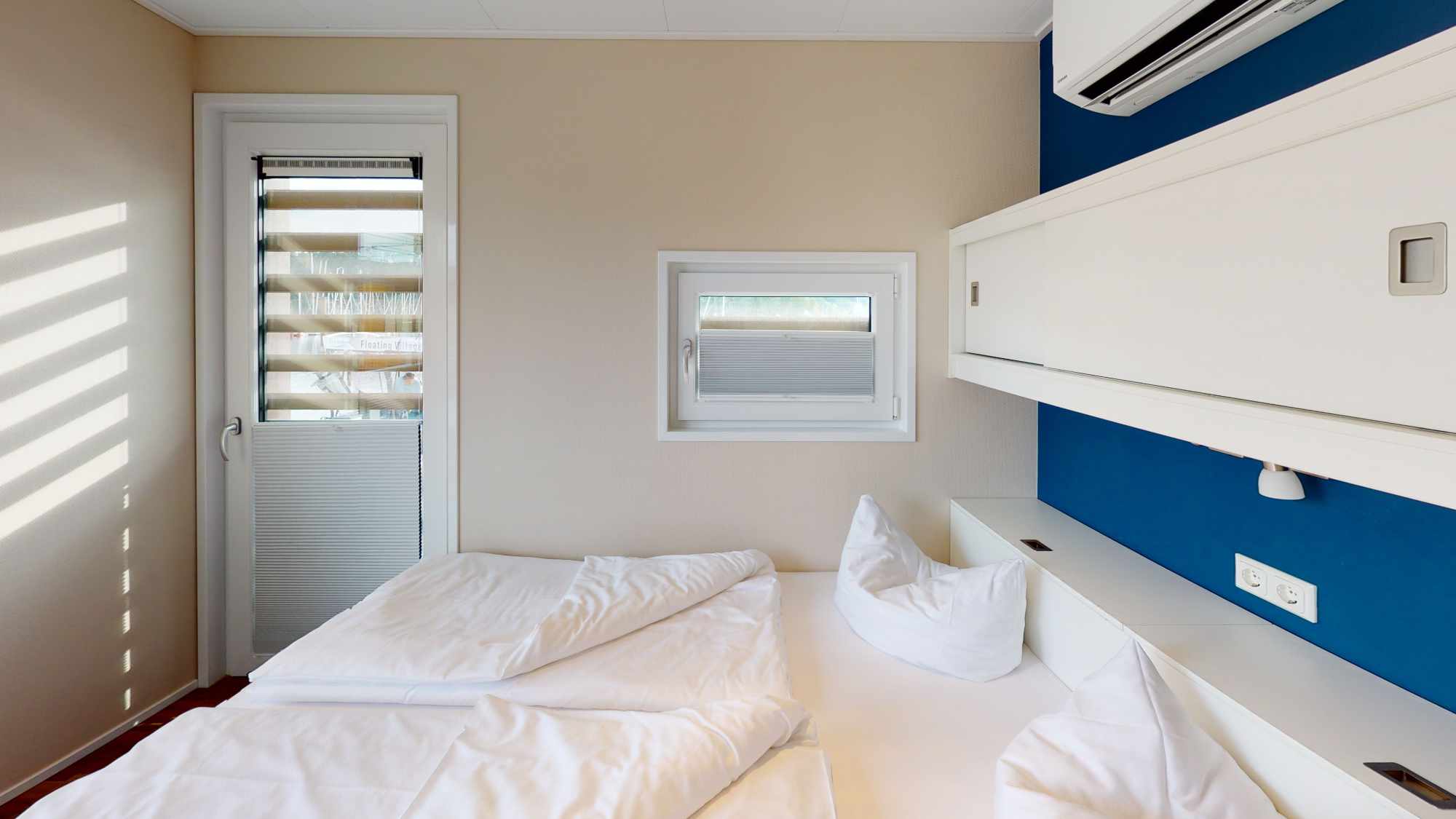 Die Wasservillen vermitteln mit einem offenen Wohn-, Ess- und integrierten Kochbereich ein Gefühl von Weite. Zwei Schlafzimmer mit Einbauschränken liefern den nötigen Stauraum. Das gefliestes Badezimmer mit Dusche und Waschtisch sowie ein separates WC mit Waschtisch sind komfortabel. Drei abgeschlossene Innenräume und zwei Terrassen bieten ausreichend Rückzugsmöglichkeiten an Bord, auch wenn Sie mit vier Personen anreisen. 24 dimmbare LED-Spots in der Decke sorgen Tag und Nacht für perfekte Lichtverhältnisse.