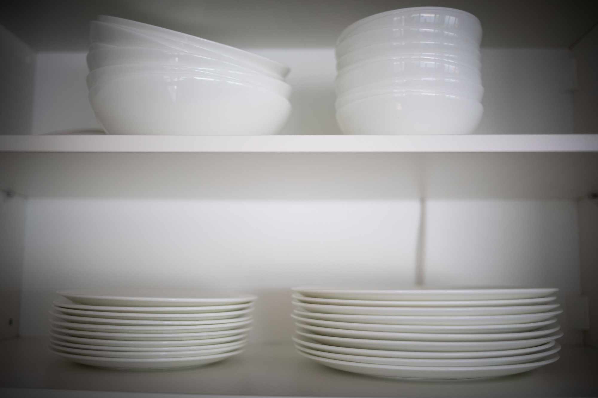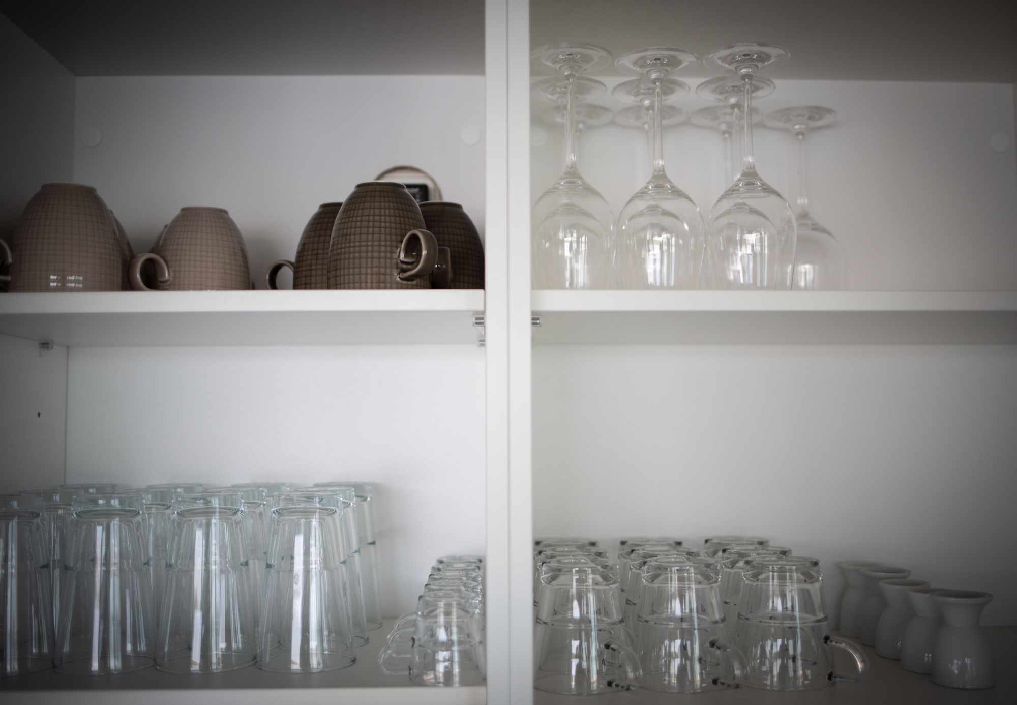 - Geschirr, Besteck, Tassen, Gläser für 4 Personen
